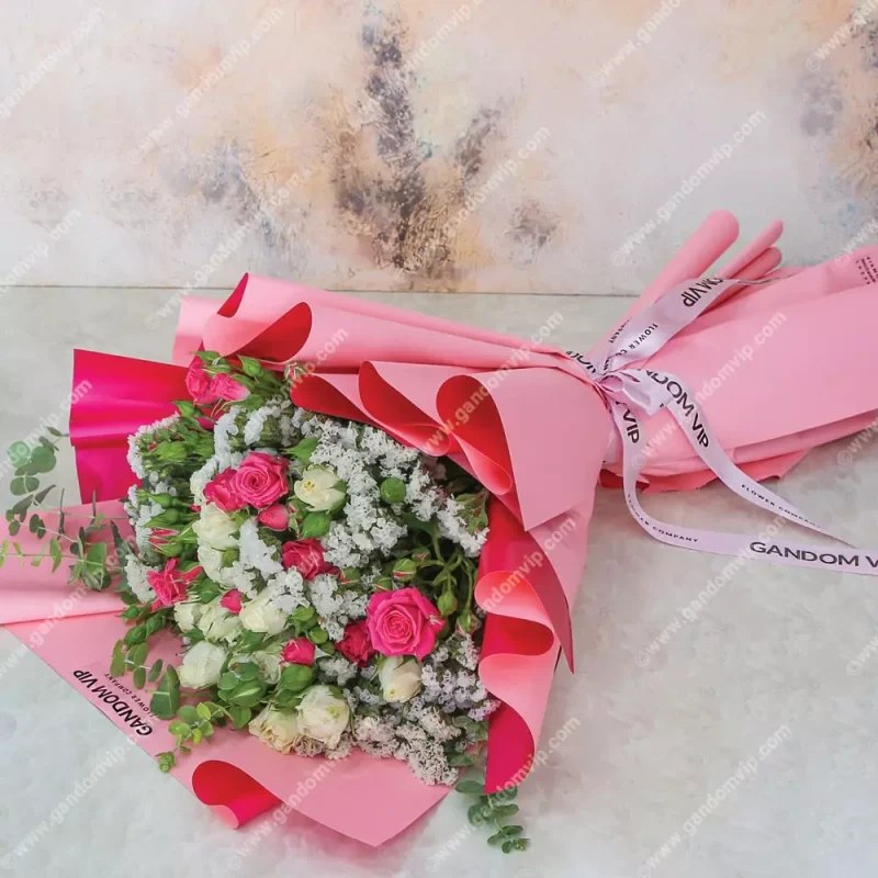 طول: 30 سانتی متر عرض: 30 سانتی متر ارتفاع: 70 سانتی متر دسته گل زیبا و دلبرانه با رز های مینیاتوری خاص و خوشرنگ قطعا از انتخاب های خوش سلیقه گان است. برای خرید گل آنلاین در گندم vip می توانید سفارش خود را از سایت انجام دهید و یا با شماره همراه: 09120044382 و تلفن ثابت: 85 82 70 88 – 021 تماس حاصل نمایید. مشاهده دسته بندی کامل زیباترین دسته گل ها با یک کلیک.