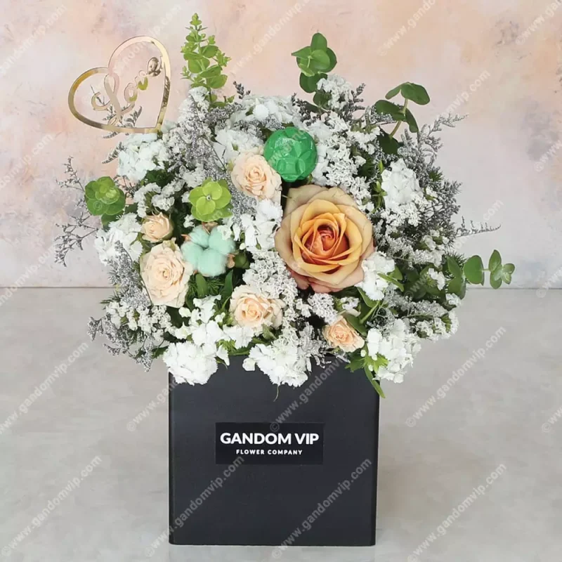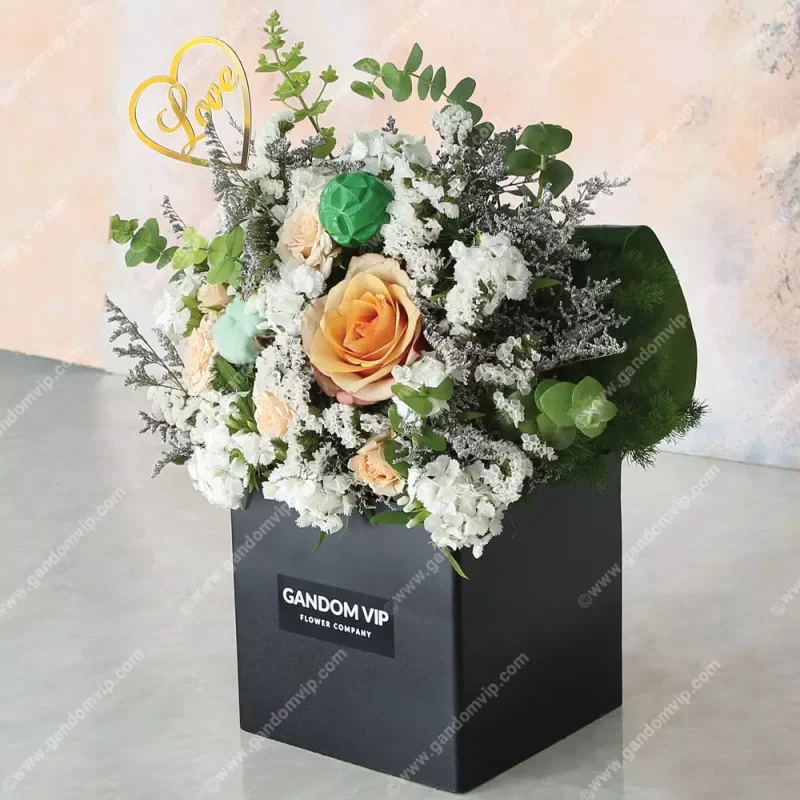 خرید باکس گل زیبا و مدرن در گلفروشی آنلاین گندم vip خرید گل آنلاین